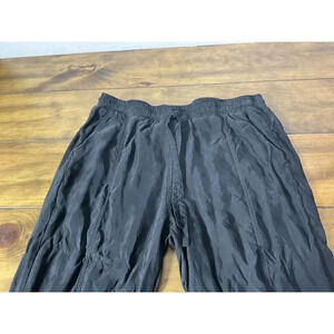 Ideal for any occasion, whether it's a party, casual outing, or even workwear, these pull-on pants offer comfort and style. Made of black Cupro fabric, these pants are machine washable and easy to maintain. The pants come in a size medium and have a flat front, making them suitable for any body type. With its solid pattern, logo accents, and bohemian theme, these pants are perfect for a beach or luxe look.pre owned good condition we ship fast measurements are in the pictures