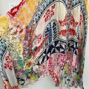 Johnny Was Rayon Yellow and Red Asymmetrical High-Low Sundress M