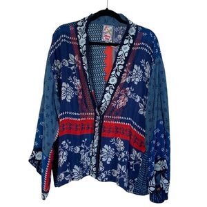 Johnny Was Set Rare NWT Blue Red Print Cupra Esme Kimono & Aurelia Pants Sz XL