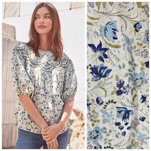 Johnny Was Tatiana Floral Top Blouse Embroidered Peasant Cottage XL
