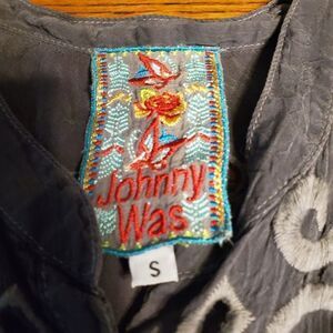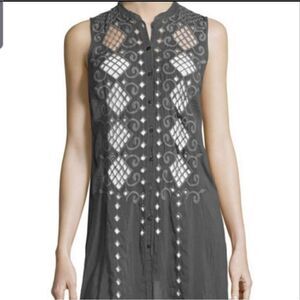 Johnny Was Sleeveless Button-Front Diamond-Eyelet Tunic Sz Small in good used condition with minimal wear.