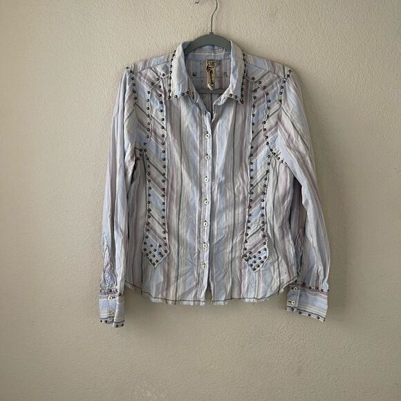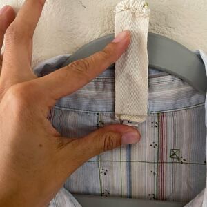 No flaws. Embroidered and studs all over. Size large. Has the stripes also. Made from 100% cotton. It is from the line 3j workshop.