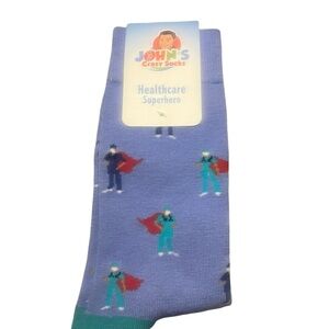 John’s Crazy Socks The Superhero Wears Scrubs Nursing Healthcare socks NWT
