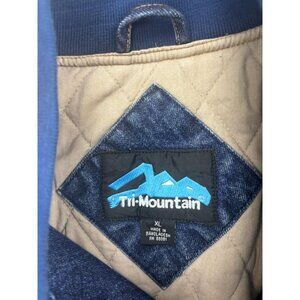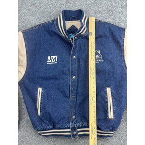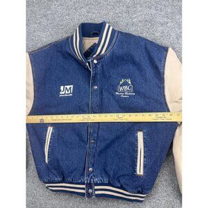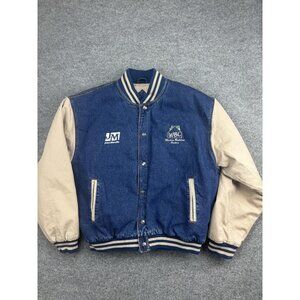 Johns Manville WBC Jacket Mens XL Blue Tan Denim Varsity Bomber Tri-Mountain