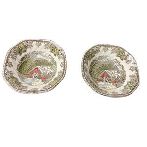 Johnson Bros Friendly Village Covered Bridge 6" Soup Cereal Bowls Set 2 England