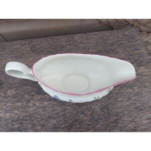 Step into a garden of timeless elegance with this vintage Johnson Bros Summer Chintz gravy boat. Adorned with delicate floral patterns and a soft pink rim, it brings an air of English charm to your dining table. Perfect for serving gravies and sauces, it combines beauty with practicality.