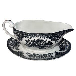 Johnson Brothers Asiatic Pheasant Black Gravy Boat And Saucer