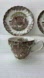 The set is made of ironstone and features a brown and multicolor design depicting a 17th-century