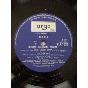 Johnson, Goldsmith & Cowper poetry read by John Neville, George Rylands and William Squire. Released in 1972 on Argo Records PLP 1032. Mono pressing