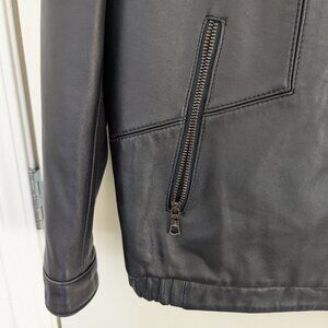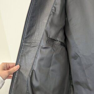 Too small for my partner now. High quality leather jacket made by small local business in San Francisco, CA. Some scuffs and signs of wear as pictured, we haven't tried to clean it so may be able to just come out.