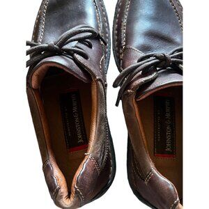 Classic Johnson & Murphy brown leather oxfords in men's size 8. Comfort-focused design perfect for everyday wear. Superior craftsmanship ensures longevity and style.