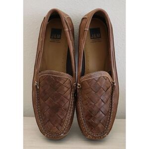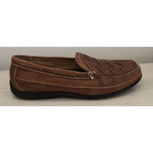 Johnston & Murphy 25-85736 Men Sz 10M Tan Leather Trevitt Woven Venetian Loafers