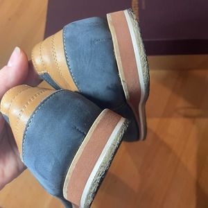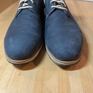 Navy blue tumbled Nubuck oxfords with a comfortable, sporty, sole. Putsole is crepe rubber.