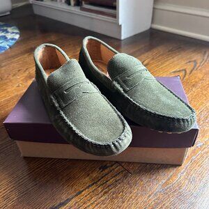 Pair of never worn, new in original box Johnston & Murphy penny moc driving loafers in olive green suede. Original price ~$129.