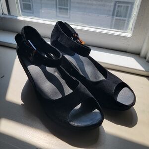 Johnston & Murphy, Black suede, platform, peep-toe wedge, 8 1/2 M