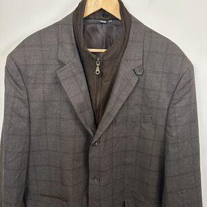 Johnston & Murphy Blazer Men XXL Brown Jacket Sport Coat Lined Plaid Window Pain