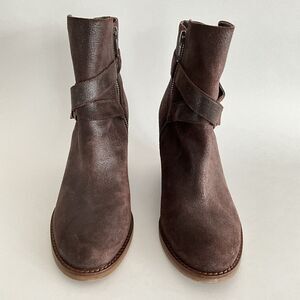 Johnston & Murphy Bootie 8M Brown Distressed Leather Wedge Brynn Waxed Jodphur