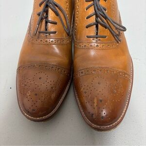 Fair used condition. Some scuffing on the leather. End of the toe of one shoe has a chip/ damage to the sole. See photos.