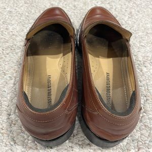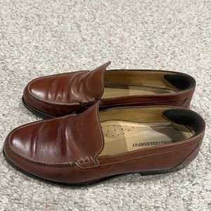 Johnston & Murphy brown leather loafers. Men’s size 10. Made in Italy. Heel support. Normal wear & tear.