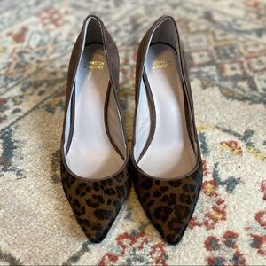 Johnston & Murphy Brown Suede Leopard Animal Fur Pumps Heels