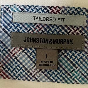 Johnston & Murphy Button Up Shirt Tailored Fit Sz L White Tonal Paisley Cotton