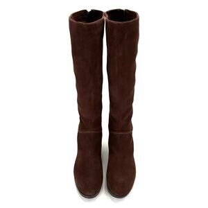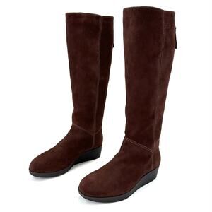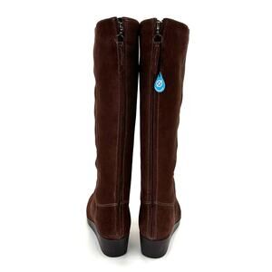 🦒 Johnston & Murphy Darcy Brown Knee High Boot Size 7 Suede Waterproof Wedge Low Platform Back Zipper Round Toe Tall Boot.