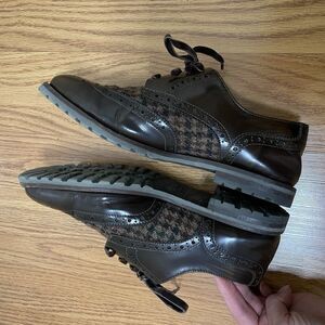 Johnston & Murphy Dark brown tweed knit patent leather oxford wingtip shoes 7