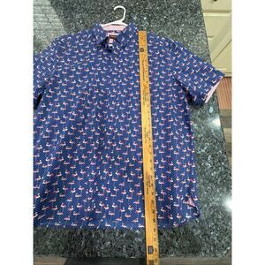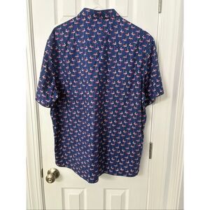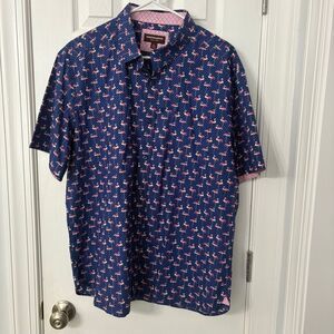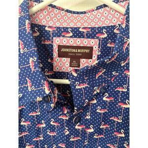 Johnston & Murphy Flamingo Print Short Sleeve Button Down Shirt Size XL