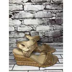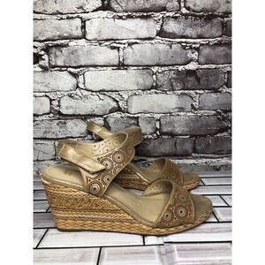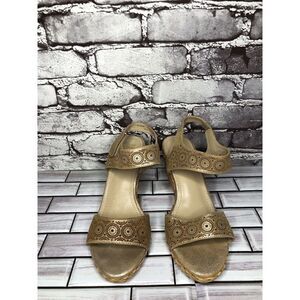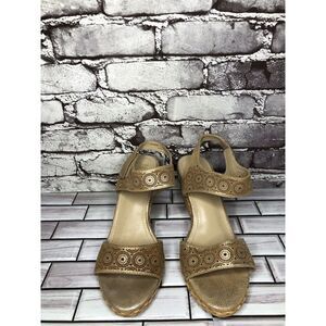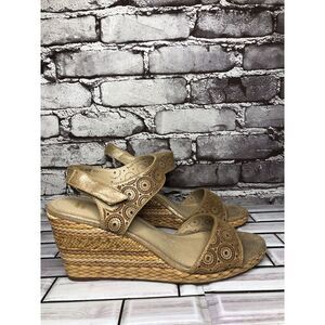 Johnston & Murphy Georgiana Metallic Gold Leather Wedge Strap Sandals Women 9.5M