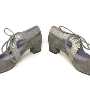 Brylee Ghillie Fawn Gray Suede Leather Lace Strappy Heels Shoes