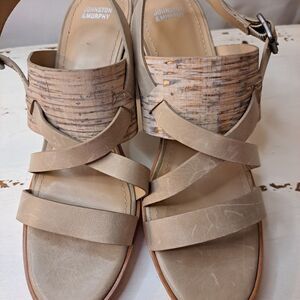 Johnston & Murphy Kayla Multi Bleached Taupe Waxy Leather Hell Sandal Shoe Sz 10