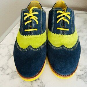Johnston & Murphy Ladies Derby Oxford Shoes Blue Yellow Lime Green Suede Size 7
