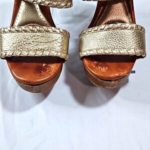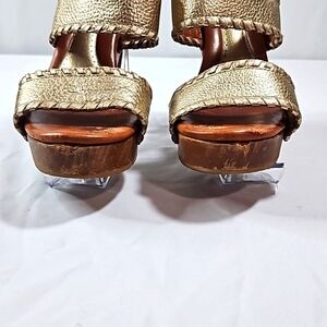 Johnston & Murphy Leather Platform Sandals Brown Studded Slip On Size 9.5