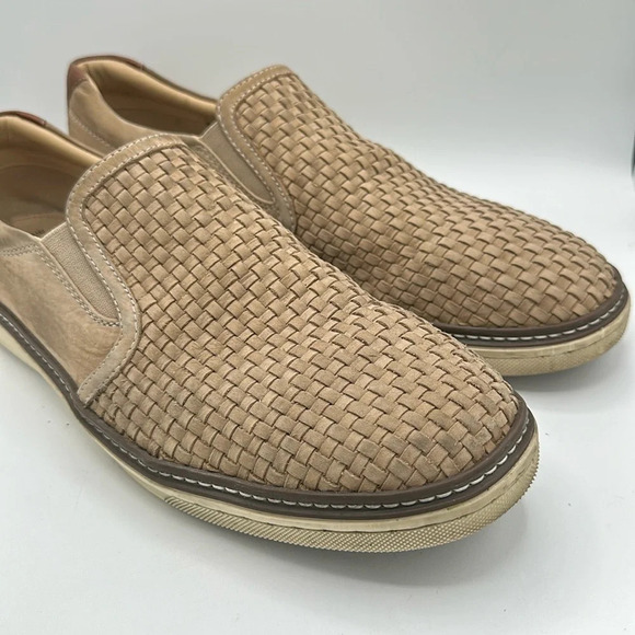 Johnston & Murphy McGuffey tan woven slip-on loafers, size 10