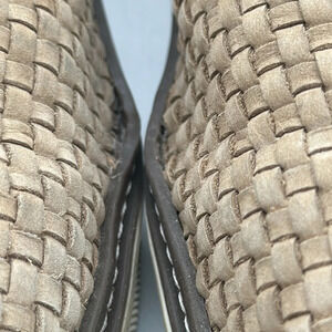 Johnston & Murphy McGuffey tan woven slip-on loafers, size 10M. Good preowned condition. Made in India. Cushioned insole with sheepskin. Rubber soles. Comfortable walking shoes.
