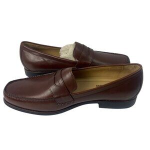 Handsewn of rich oiled calfskin for a casual look comfortable fit and feel this Ainsworth Penny features full grain smooth leather upper sheepskin lining molded sheepskin cushioned insole provide an extra measure of comfort. Latex rubber outsole lends comfort and durability.