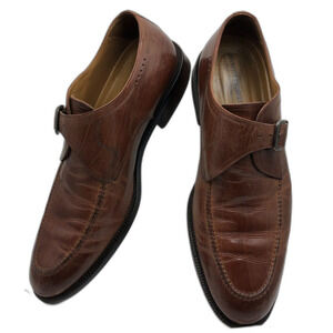 Johnston & Murphy Men's Brown Leather Monk Buckle Style Shoes 11.5M Sheepskin