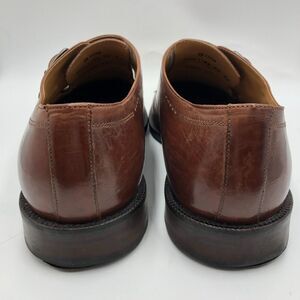 Johnston & Murphy Signature Series Men's Brown Leather Monk Buckle Strap Style Shoes Size 11.5M Sheepskin. Shoes are pre-owned. Please see all photos for visible condition. No original box. Slip on. 5911150. Caps on both heels - see photo - could be removed if necessary.