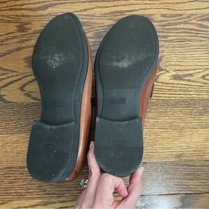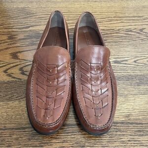 These are men's Johnston & Murphy loafers in a chestnut brown color. They are in excellent condition, only worn twice. Shoes are a size 10M.