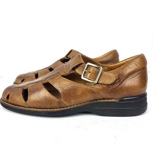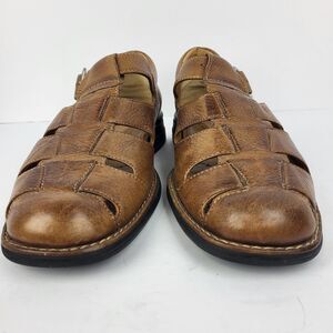 Johnston Murphy Men's Fisherman Sandals 10 M Brown Soft Pebbled Leather Shoes