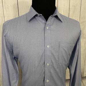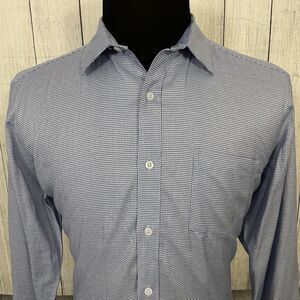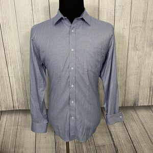 Johnston & Murphy Men's Large Blue Contrast Cuff Long Sleeve Button-Front Shirt