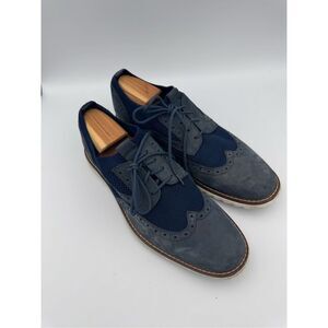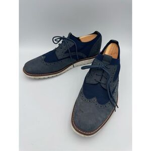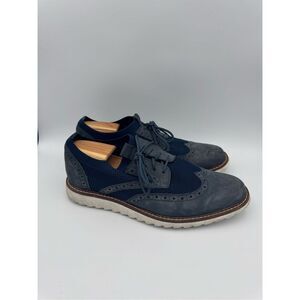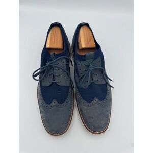 Johnston & Murphy Mens Navy Leather & Fabric Knit Duncan Wingtip Oxford Sz 11.5