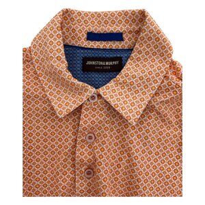 Johnston Murphy polo, men's orange shirt, geometric print polo, casual polo XL, Pima cotton polo, Johnston Murphy XL, orange polo shirt, stylish men's polo, short sleeve polo, luxury polo shirt, designer men's shirt, men's summer shirt, soft stretch polo