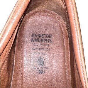 mens loafers, waterproof shoes, dress shoes, Johnston Murphy, tan leather, formal footwear, slip on shoes, leather loafers, mens dress shoes, professional shoes, rubber sole shoes, durable footwear, size 8.5M