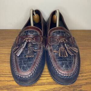 Johnston & Murphy Mens Tassel Two Toned Black Brown Leather Woven Loafers 9 M