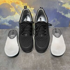 You are looking at a pair of Used Johnston & Murphy Men's XC4 TR1-Sport Hybrid - Black Knit Sneakers