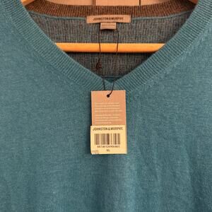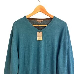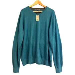 Johnston & Murphy Men’s XL Silk Angora Nylon Blend V-Neck Sweater Teal NWT