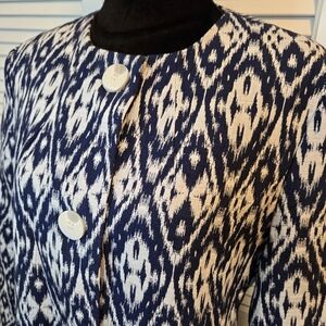 Johnston & Murphy Navy White Boho Geometric Design Blazer Jacket 3/4 Sleeves