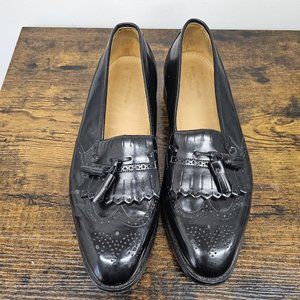 Johnston Murphy Optima Shoes Brogue Wingtips Kiltie Tassel Black Slip On 15D