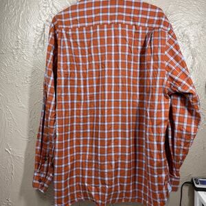 Johnston & Murphy Orange Long Sleeve Cotton Tailored Fit Check Shirt Mens Large